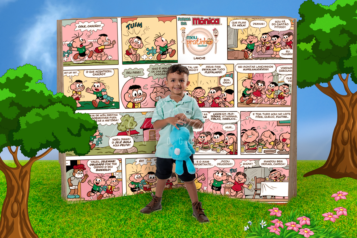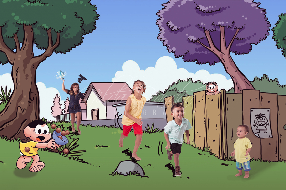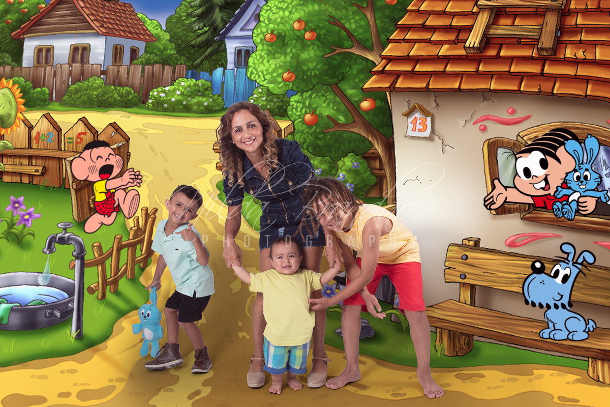 A Marian tem tres filhos, que vamos chamar aqui de Cascão, Cebolinha e Chico Bento. O Aniversário dos tres são em datas aproximadas então, que melhor forma de comemorar do que fazendo um ensaio inspirado na turma mais amada do Brasil? A Turma da Mônica encanta crianças há 50 anos, e duvido que haja um brasileiro que não conheça essa turminha. As crianças entraram no clima da brincadeira, especialmente o Cebolinha, que adorou dar nós no coelhinho da Marian, ela não deixou por menos!