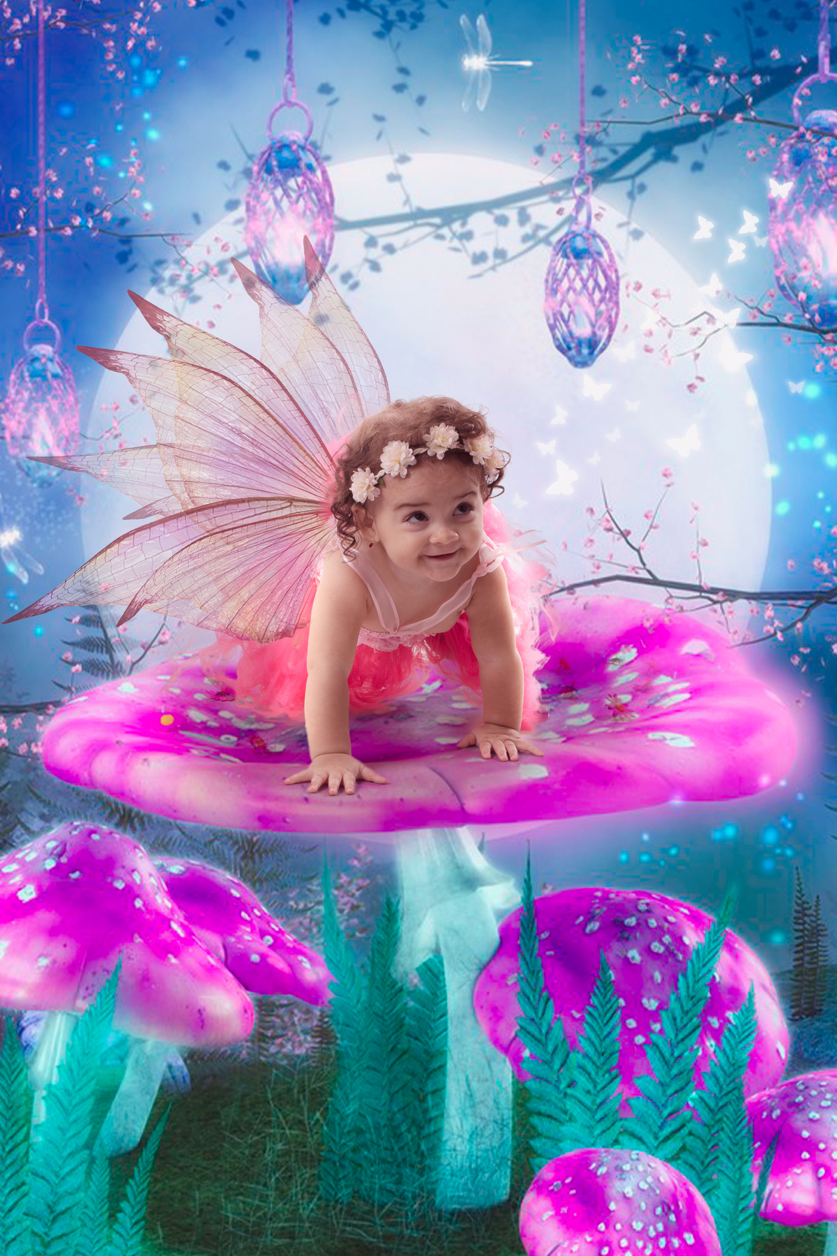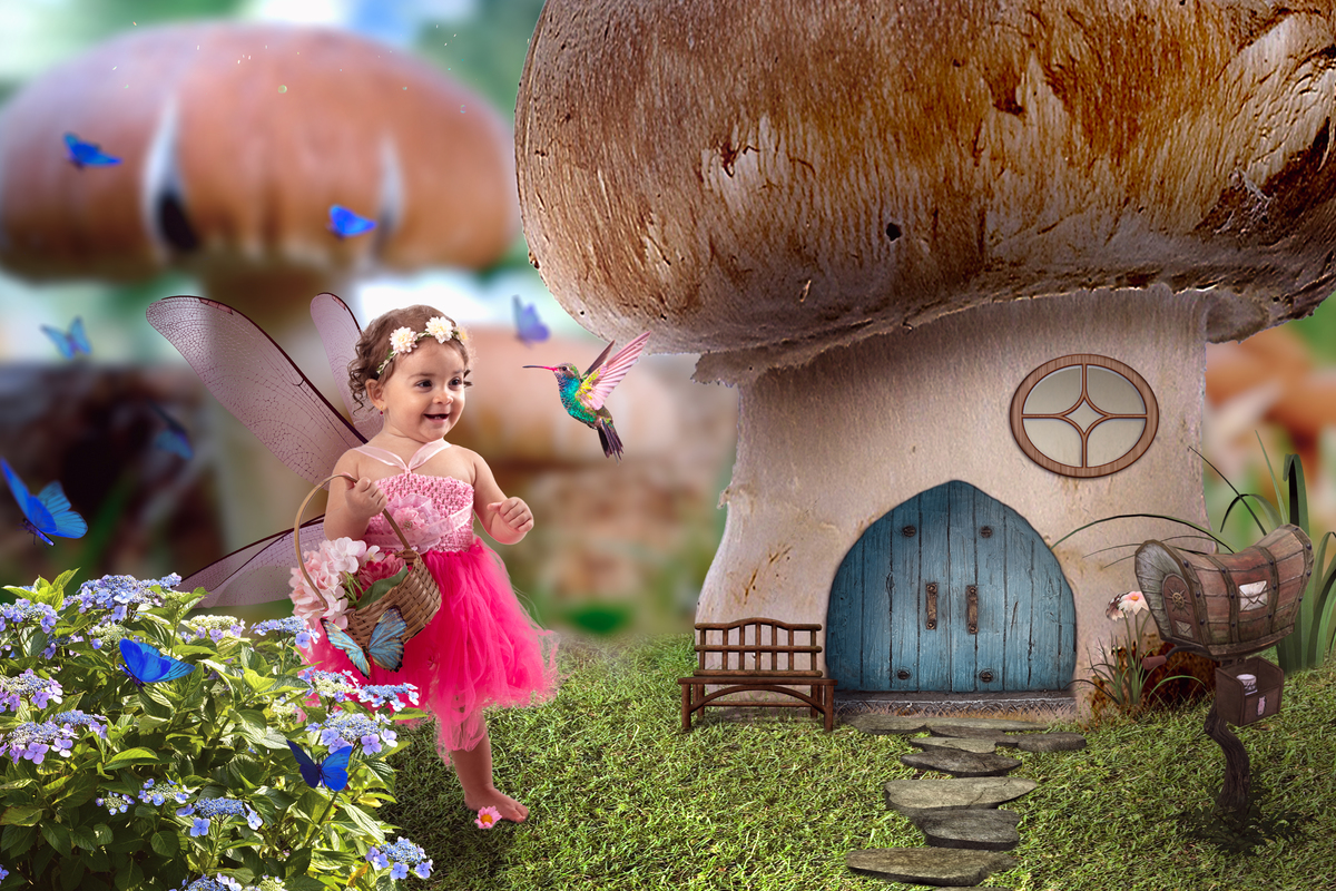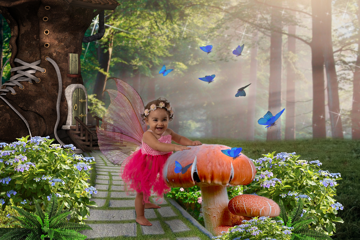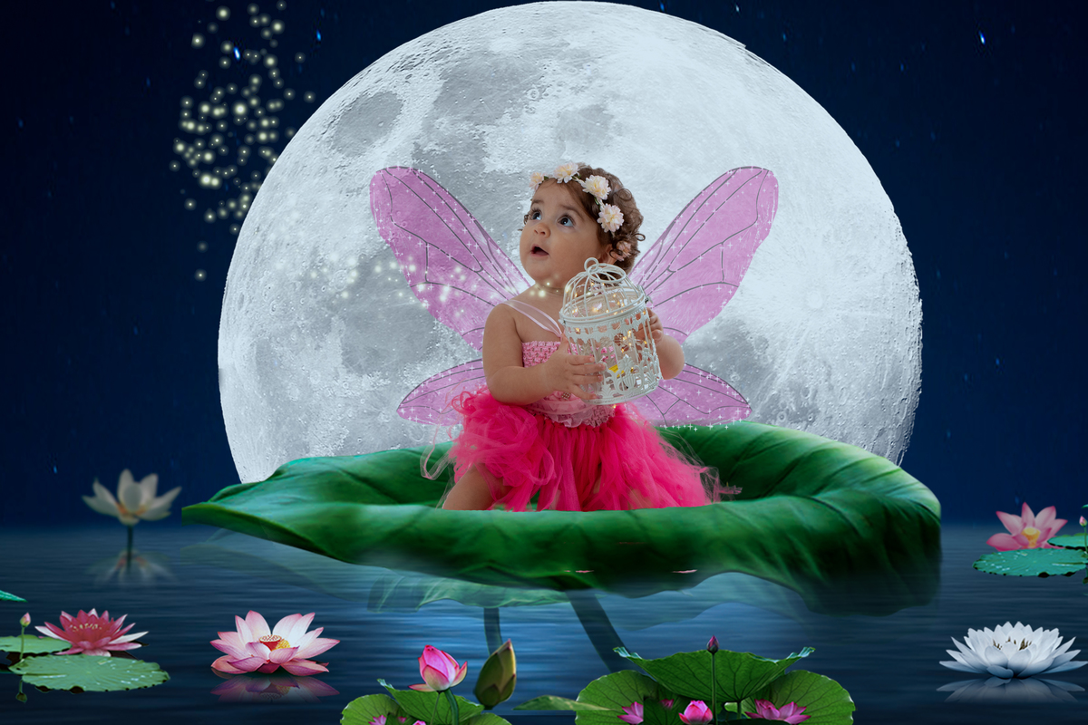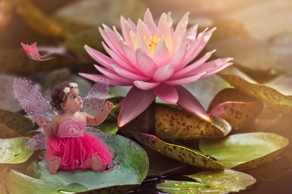 Primeiro fazemos fotos lúdicas do tema escolhido (fadas, sereias, princesas, heróis...)